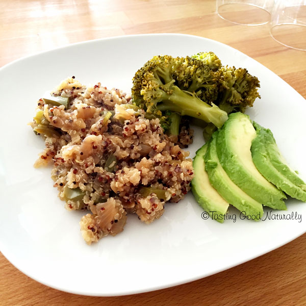 Quinoa aux petits légumes, brocolis vapeur et avocat