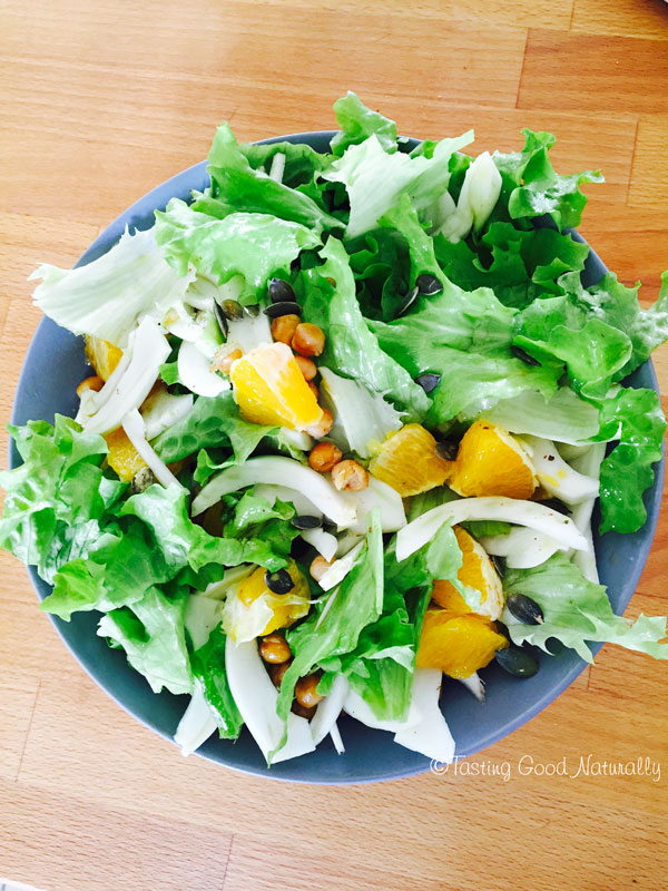 Salade de fenouil, orange et pois chiches rôtis