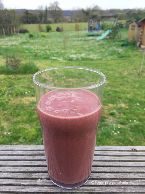 Smoothie aux fruits rouges, kale, et protéines de chanvre